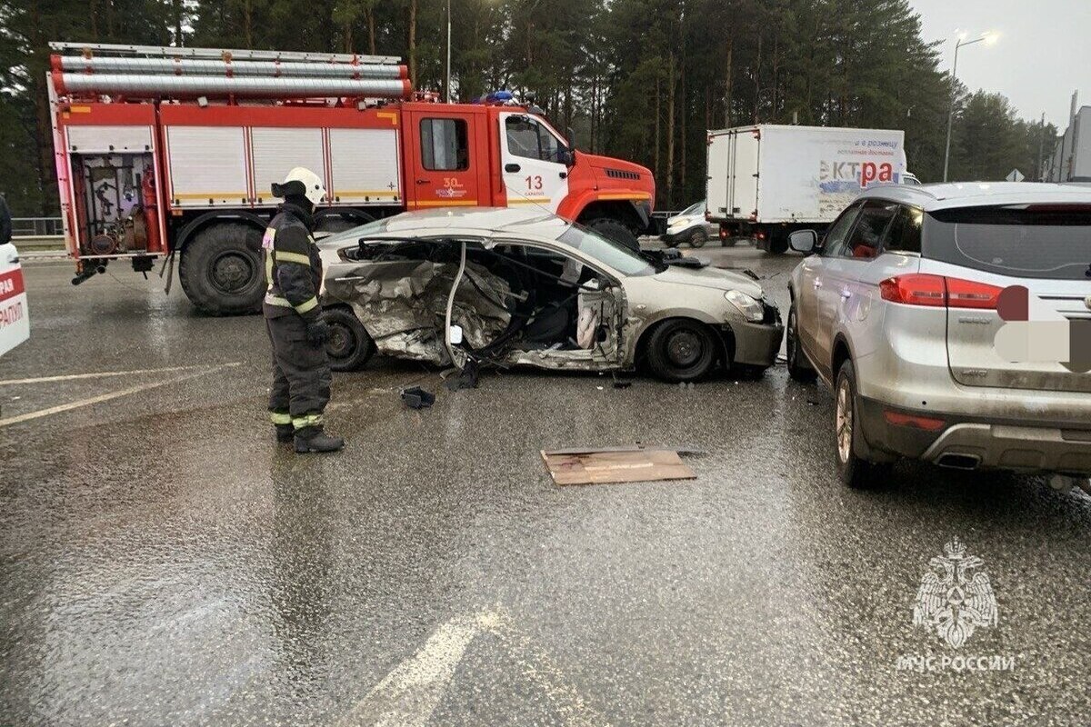 В Сарапуле, расположенном в Удмуртской Республике, произошла серьезная автомобильная авария. На улице Путейской столкнулись три легковых машины.